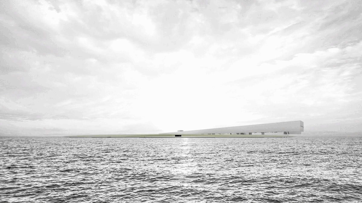 The site of the museum is where the Equator intersects the Prime Meridian, at the coordinates 0,0 (longitude and latitude of zero), a place fictitiously referred to as Null Island. Interestingly, due to errors in geocoding programmes, information is often erroneously mapped to this null coordinate. The site is a virtual gathering place where data tends to flow. It seems apt, then, to situate the museum as a data collection point here, out in the sea, belonging to no particular state. As a floating barge, seawater ebbs in and out of the sand-scape, reacting with the olivine sand to capture carbon out of the air and eroding the patterns away during high tides; the waves themselves contributing to the generative mandala.
