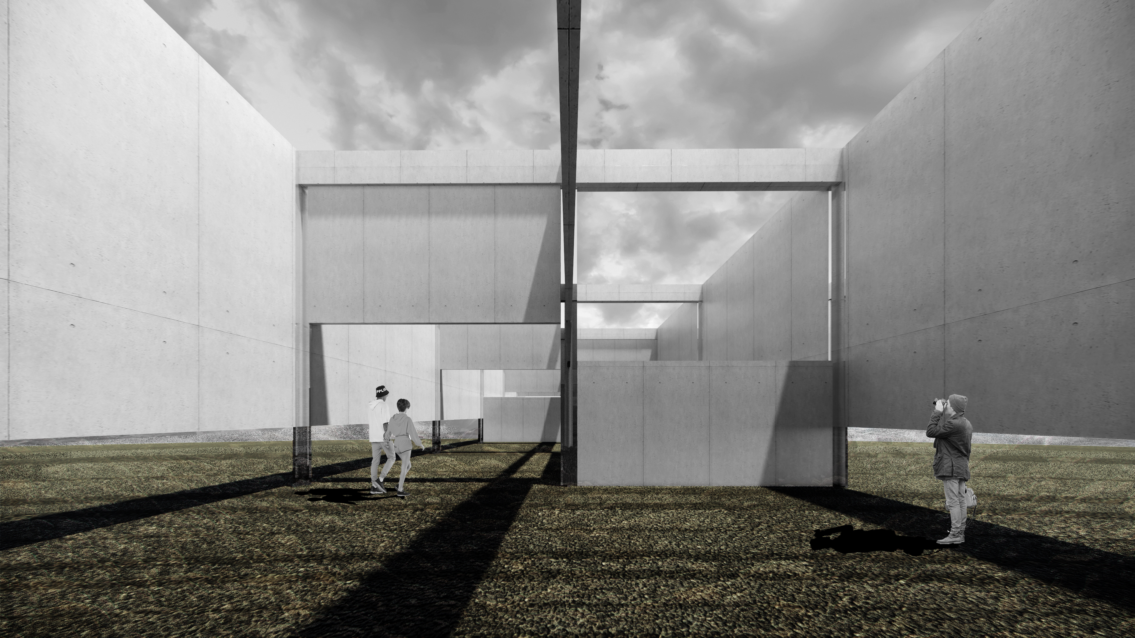The ‘hand’ of the clock, the armature, spans the diameter of the circular sand-scape. Half of the armature houses the programmatic functions of the museum: galleries, research centres and a café. The other half contains the kinetic mechanisms that engrave the sand: a maze of walls that actuates up and down, etching the ground when the walls interface the sand. The configuration of the walls depends on the pattern being plotted at that particular moment, determining the vertical positions of the walls. As the armature sweeps across the landscape, sand flows in and out of the floor, slowly. The experience of walking through this perpetually shifting (albeit very slowly) sand-filled maze is a contemplative one, as visitors weave around the walls, watching as the sand trickles by on the ground.