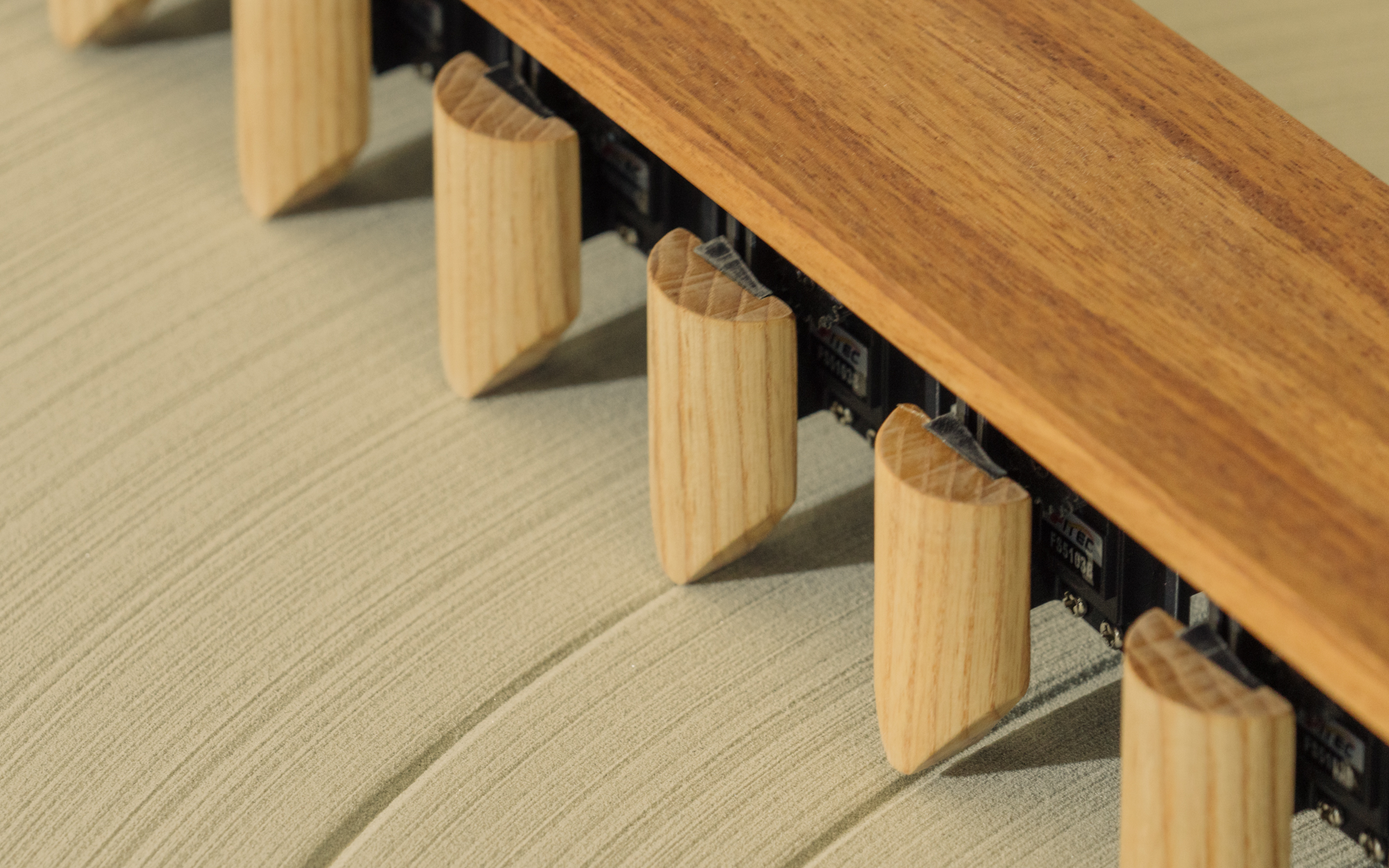 The patterns are generated from global climate datasets—carbon emissions, tweets on climate change, meteorological data—which are then translated into visualisations to represent collective action. Seen from above, the rotating installation creates mandala-like patterns in the sand. The mandala is a spiritual symbol in Eastern religions, used during meditation to help with healing. In this way, the form and material of the installation become a symbol of recovery and restoration—an important aspect of climate action that is all-too-often overlooked.